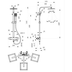 | Components | Thermostatic mixer,Shower rail, Hand shower holder,Overhead shower,Hand shower, Shower hose,Installation accessories, Installation instructions |