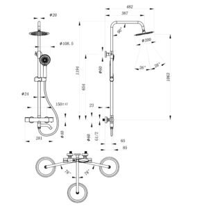| Components | Thermostatic mixer,Shower rail, Hand shower holder,Overhead shower,With 3-mode hand shower, Shower hose,Installation accessories, Installation instructions |