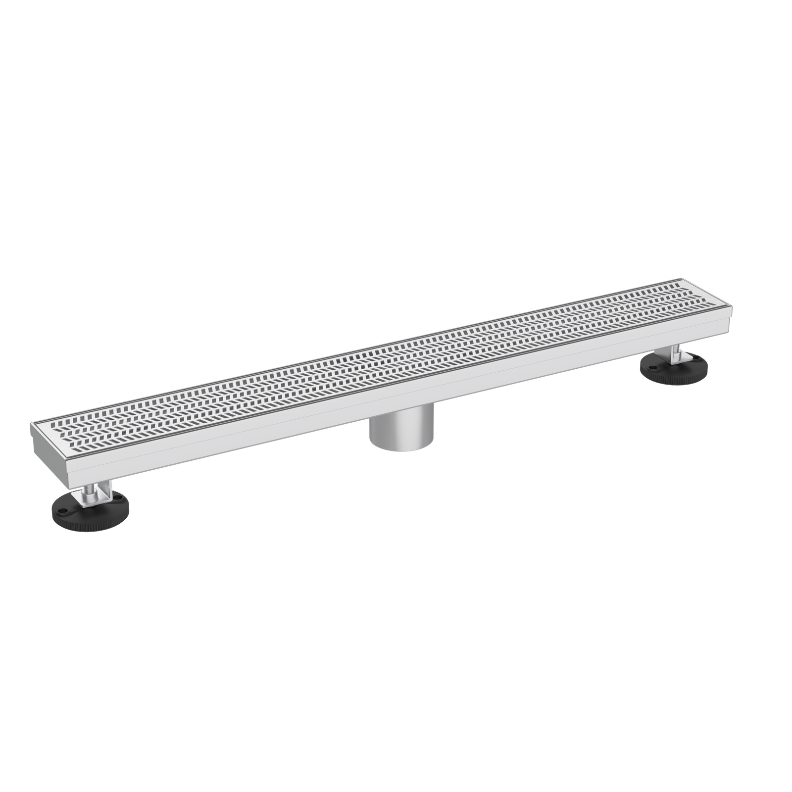 The lines of striped grates are organized in an ordered fashion to guarantee that the shower environment is properly drained.